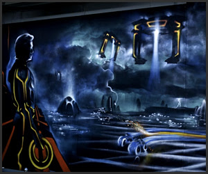 Tron Legacy Mural Being Painted By A Graffiti Artist