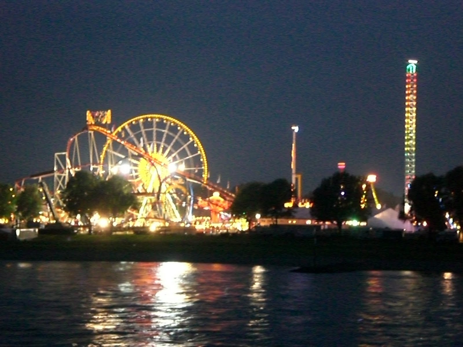 Große kirmes mit feuerwerk und flohmarkt.