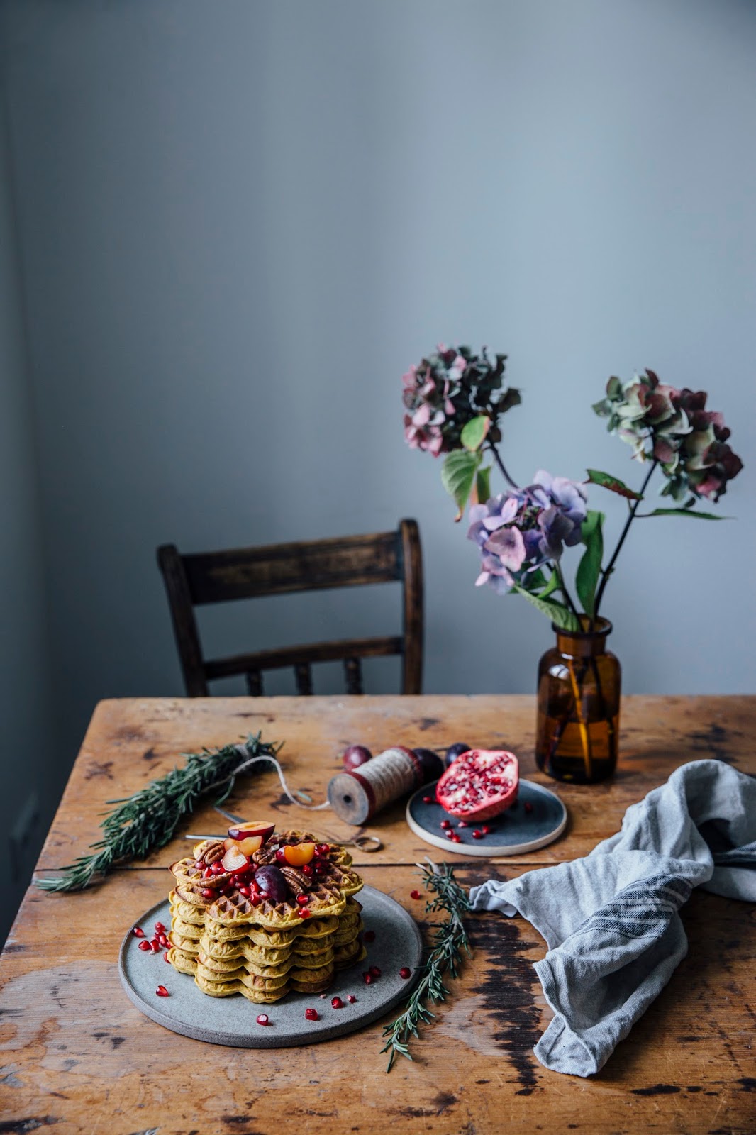 Autumn Mood Glutenfree Pumpkin Waffles With Plum Rosemary Compote